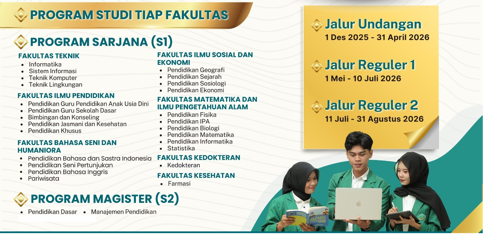 Universitas Hamzanwadi invites prospective students to join the New Student Admission for the 2026/2027 Academic Year, under the spirit of Religious and Competitive, as one of the leading private universities in West Nusa Tenggara with an inclusive and violence-free campus environment.